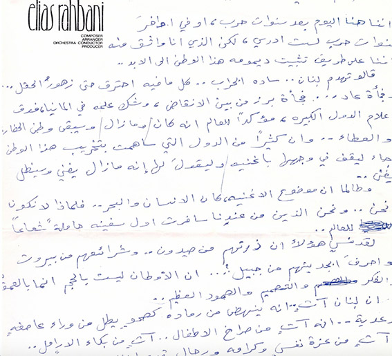 في وصية بخط الياس الرحباني: حَبَّةُ القَمحِ لا تَقتُلُ بل تهب ذاتها للحياة