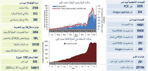 اعلنت وزارة الصحة العامة تسجيل 3469 اصابة جديدة رفعت العدد التراكمي للحالات المثبتة الى 366302. كما تم تسجيل 52 حالة وفاة.