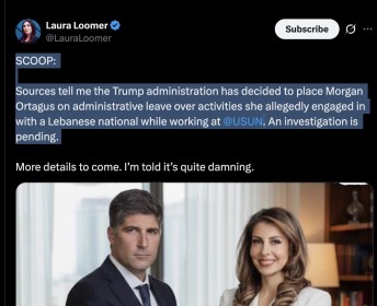 ليبانون تابلويد- واشنطن-تحت عنوان «سبق صحافي – SCOOP»، غرّدت الناشطة والإعلامية الأميركية المثيرة للجدل لورا لومر (Laura Loomer) كاشفةً أنّ مصادرها تفيد بأن إدارة الرئيس الأميركي دونالد ترامب قررت وضع مورغان أورتاغوس في إجازة إدارية، على خلفية أنشطة يُزعم أنّها قامت بها مع مواطن لبناني خلال فترة عملها في بعثة الولايات المتحدة لدى الأمم المتحدة (USUN). وأشارت لومر إلى أنّ التحقيق لا يزال قيد المتابعة، من دون أن تصدر حتى الآن أي بيانات رسمية توضح طبيعة هذه الأنشطة أو الإطار القانوني الذي تُبحث ضمنه. وكانت قد ترددت في أوساط سياسية وإعلامية معلومات غير مؤكدة عن خطوبة أورتاغوس من رجل الأعمال اللبناني أنطوان صحناوي، وذلك بعد انفصالها عن زوجها السابق، إضافة إلى حديث عن مغادرتها عائلتها في تلك المرحلة. كما تحوم، بحسب هذه الأوساط، شبهات عن مخالفات مالية محتملة مرتبطة بموقعها الوظيفي السابق، من دون صدور أي إثبات قضائي أو موقف رسمي يؤكد أو ينفي هذه الادعاءات. وتُعدّ لورا لومر من أبرز الأصوات اليمينية المتشددة في الولايات المتحدة، وواحدة من الشخصيات الإعلامية القريبة من قاعدة الرئيس دونالد ترامب، وقد عُرفت بأسلوبها التصادمي وتسريباتها التي غالبًا ما تُحدث جدلًا واسعًا في المشهدين السياسي والإعلامي الأميركيين، خصوصًا خلال فترة الولاية الرئاسية الثانية لترامب.