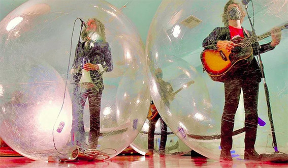 أعادت فرقة الروك الأمريكية ، فلامينغ ليبس (الشفاه المشتعلة) ، الموسيقى الحية بطريقة آمنة.