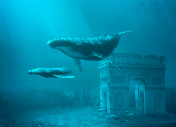 تُصوِّر سلسلة العروض المسماة "أخبار من المستقبل" معالم معمارية شهيرة في أماكن مثل باريس وروما ونيويورك ولندن تحت الأمواج أو غارقة في رمال الصحراء.