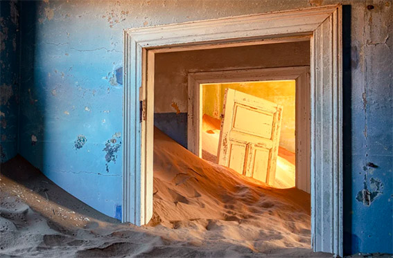 المنازل التي تم نسيانها منذ فترة طويلة غارقة الآن في الرمال ، مما يجعلنا نتساءل من عاش هناك ذات يوم.